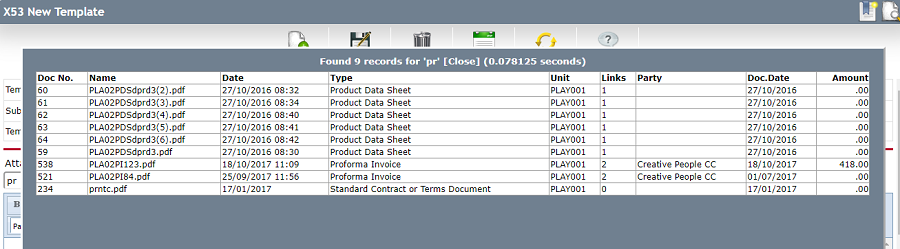 If you search for a document without entering a search text all documents having status Open or are of type [Unspecified] will be listed.